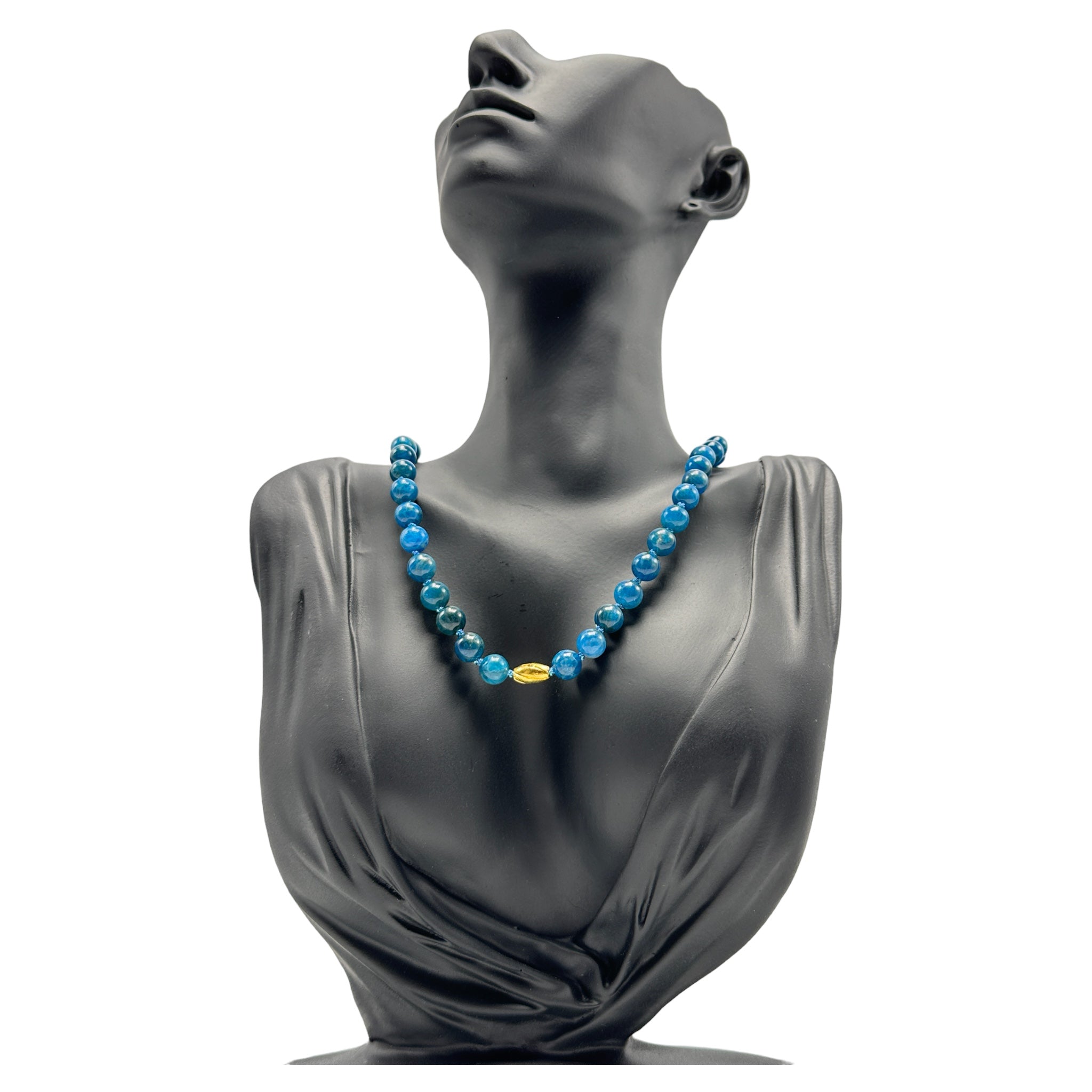 "The combination of Larimar and Apatite in a single necklace is breathtaking. The oceanic blue tones complement any outfit, making it a must-have accessory."